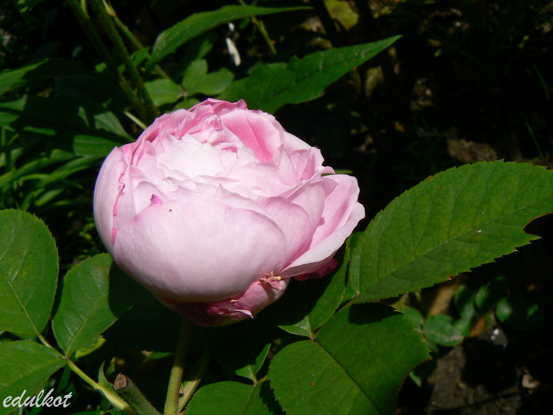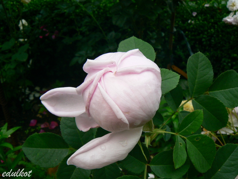 Od początku ma pecha, a to koty ją mocno połamały, a to sąsiadka Souvenir de Greuville przygniotła ją pod ciężarem kwiecia i deszczu. 2017 cięta niziutko, ale troszkę urosła.