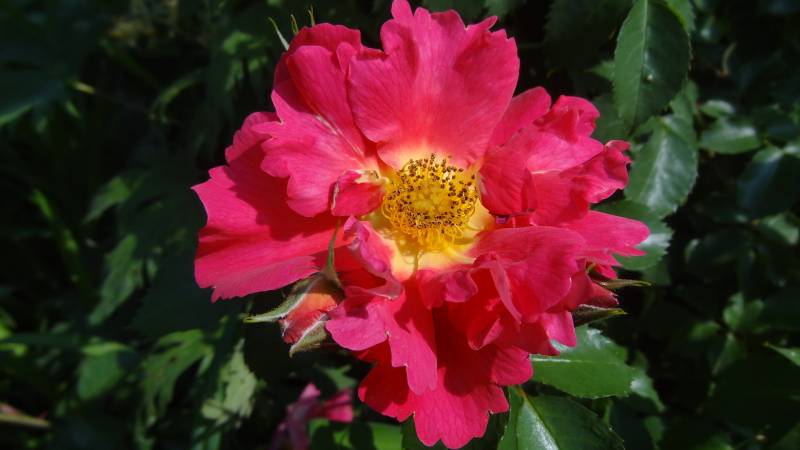 Pierwsze kwiaty Louis Riel, niestety, tylko jedno zdjęcie się w ogóle nadaje do pokazania. W każdym razie, zadowolona jestem ogromnie- widać, ze ta róża lubi kwitnąć, kwiaty też są zdumiewająco duże jak na mieszańca rubrifolii. Trochę niepokoi mnie pokrój ale, mam nadzieję, do wypracowania jest.
