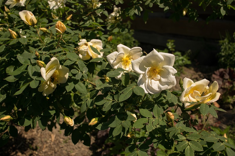 Aicha ma wspaniały zapach wyczuwalny z daleka, kwitnie wcześnie i obficie pod koniec maja, powtarza zwykle pojedynczymi kwiatami, ale w tym roku po deszczach zakwitła znowu mocno, tworzy ogromny i niestety bardzo kolczasty krzak