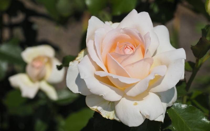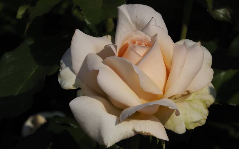 Kwiat: kremowy z różowym rumieńcem o szlachetnym kształcie ( Ø: 8 -10 cm ) złożony z ponad 50 płatków