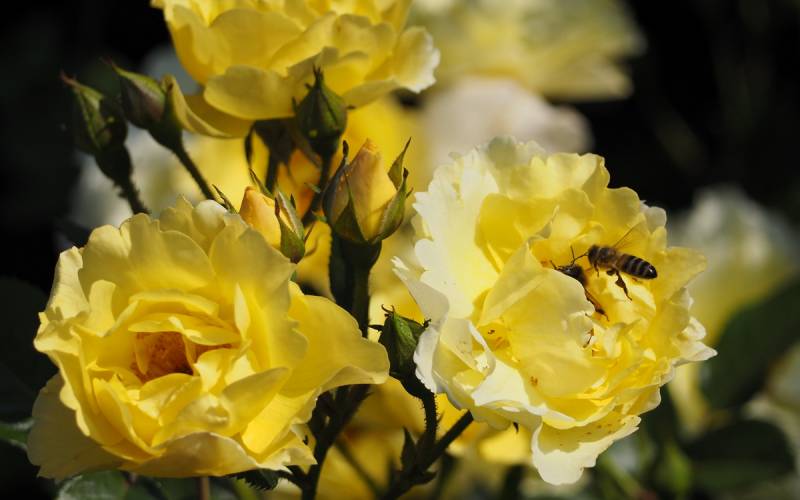 Róża 'Goldspatz' powtarza kwitnienie. Kwiatów jest niewiele (ale i tak cieszą), bo nie przycięłam krzewu po pierwszym kwitnieniu.