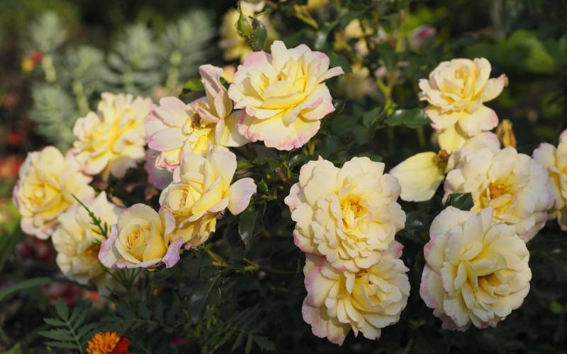 Hodowca: W. Kordes’ Söhne 2011 Typ: floribunda, która należy do serii ReKord-Rosen (róże które dobrze rosną na własnych korzeniach, nie wymagają szczepienia) Kwiaty: żółte z czerwonymi przebarwieniami, klasycznej budowy z około 25 płatkami ( Ø: 7- 8 cm ); kwitnie długo i obficie Liście: soczyście zielone, skórzaste o wyraźnie piłkowanych brzegach, wykazują wysoką odporność na czarną plamistość Zapach: słaby Wielkość: roślina niewielkich rozmiarów, wys. 70 cm x szer. 40 cm Mrozoodporność: strefa USDA - 6a