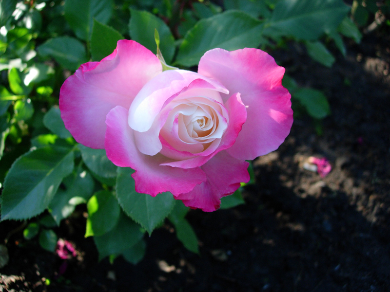 Rodzaj kwiatów: kwiaty półpełne przebarwiające się od bieli z różową otoczką do ciemnego różu