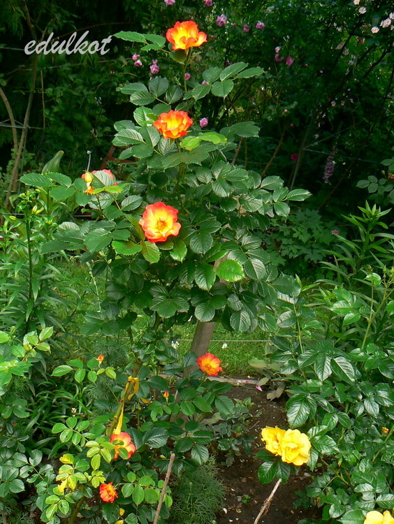 Kwiaty: intensywnie żółte w środku, zaś brzegi płatków w wiśniowo-pomarańczowe kolorze; starsze kwiaty stają się czerwone, a następnie kremowo-czerwone ( Ø: 6-7 cm )