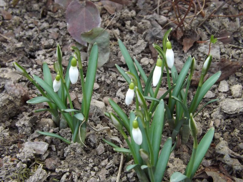 U mnie przebiśniegowo tak sobie. Odmiana 'Flore Pleno' jak zwykle dała ciała, nie wiem dlaczego pełnokwiatowe przebiśniegi się u mnie nie udają. Galanthus woronowii ucierpiało od mrozów, Galanthus elwesii jakoś tam żyje ale zachwytu nie wzbudza ( kępa bardzo, bardzo wolno się powiększa ), Galanthus nivalis gatunek i odmiana 'Viridapice' dają radę.