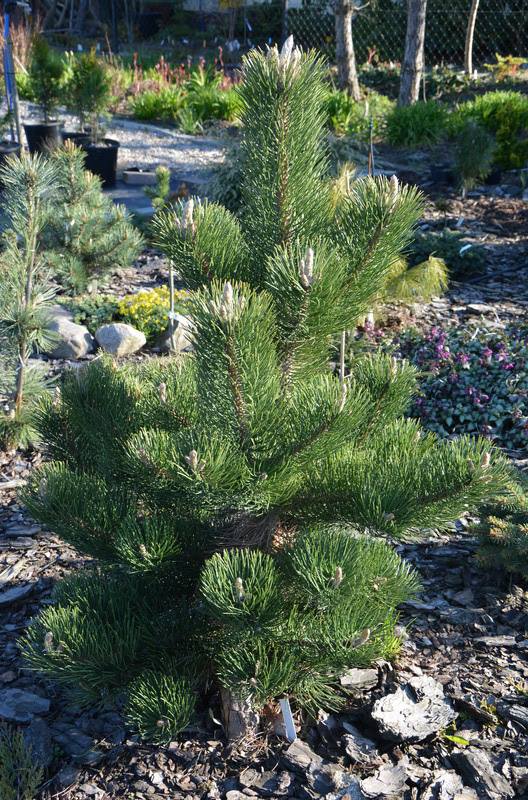 Igły: długie (10-12 cm), ciemnozielone, błyszczące, bardzo gęsto ułożone, zebrane po dwie