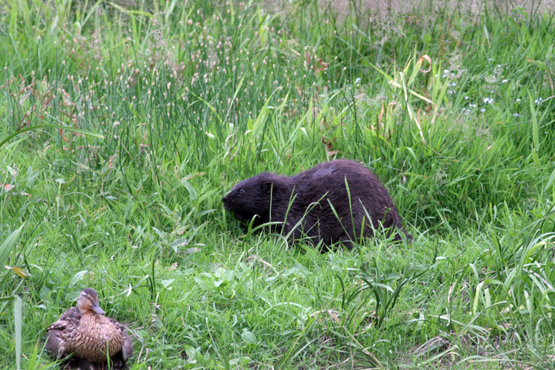Wielu z nas widziało bobrze żeremia, ale żeby zobaczyć samego bobra, to już trzeba mieć szczęście. My mieliśmy, bo nie dość, że krążyły wieczorem w rzeczce 2 sztuki, to jeszcze jeden z nich wyszedł na brzeg, pasł się i szudrał. Myślałam na początku, ze coś go swędziało, ale doczytałam, że one czyszczą dokładnie futro po czym rozprowadzają po ciele wydzielinę z gruczołów przyodbytowych żeby nabrać wodoodporności.