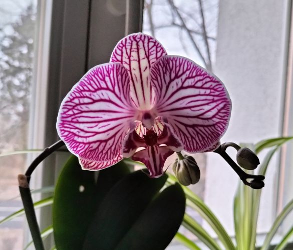 Miltonia mi zakwitła. Nie miałam takiej, kwitnie po raz pierwszy. Jestem zaskoczona, bo celowo nie kupowałam Pewnie to coś z "półki śmierci".