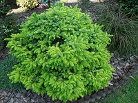 Miniaturowa odmiana świerka serbskiego o mikroskopijnych przyrostach, których wielkość waha się około 2 cm rocznie. Rośnie w kształtną kulkę o lekko spłaszczonym pokroju.