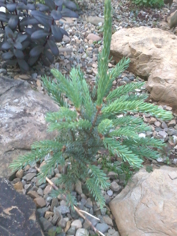 Zgodnie z nazwą przyjmuje kształt kropli i ma jasnoniebieskie igły. Budowa bardzo gęsta. Przyrost roczny: 2-3 cm Stanowisko: słońce