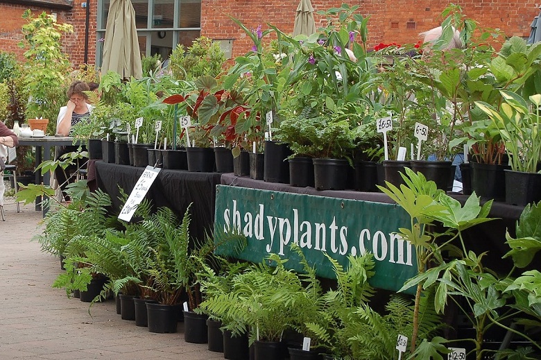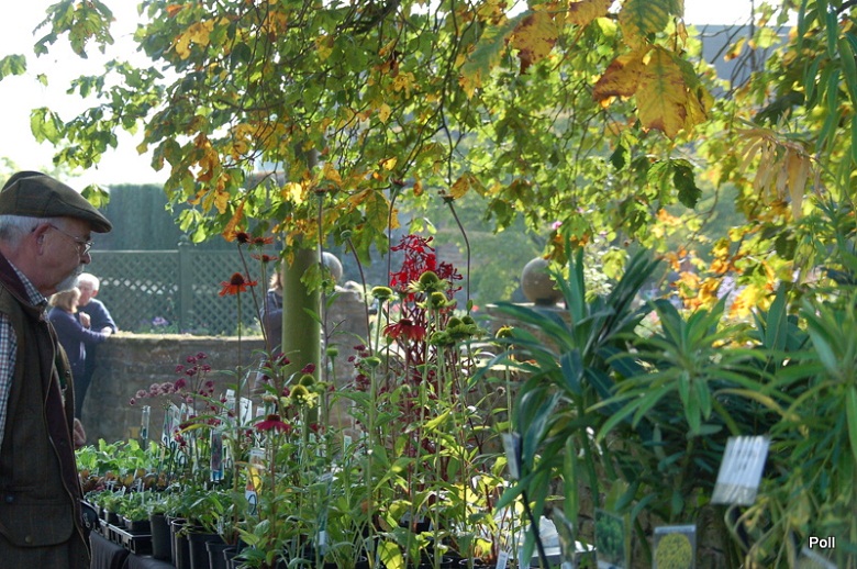 Stoiska kiermaszowe ustawiono wzdłuż dróg, między innymi tuż koło zabudowań gospodarczych , oraz murów okalających część ogrodową posiadłości. Część stoisk rozłożono na trawnikach. Impreza była kameralna, skupiała bowiem nie więcej, niż 40 wystawców, ale za to były to nursery z najwyższej półki, które widziałam również na Flower Show. Wybór roślin był dość szeroki a i ceny nieco niższe, niż na Flower Show.