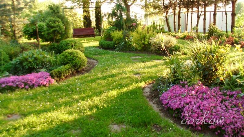 Typowych zdjęć trawnika nie mam, razem z rabatami, ale widać co na nim rośnie.