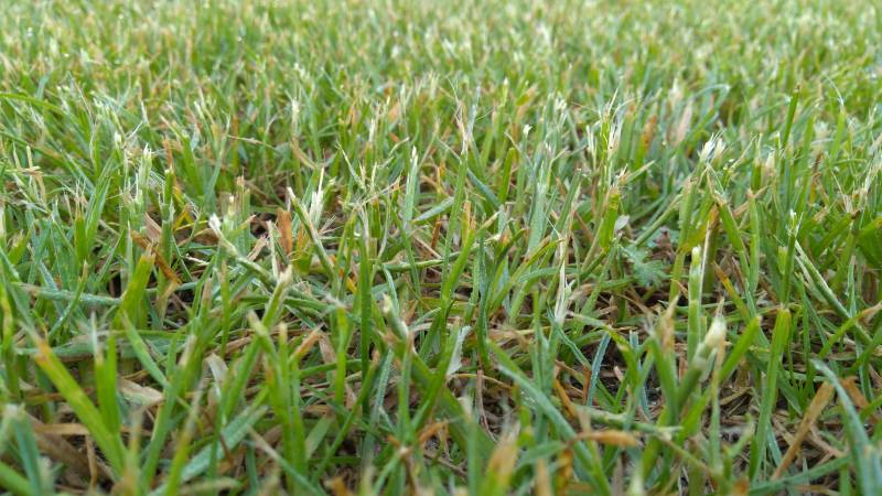 Zauważyłem,że trawa jest żółtawa, wrażenie to jest spowodowane tym, że końcówki trawy są pożółkłe i postrzępione. Co może być przyczyną?