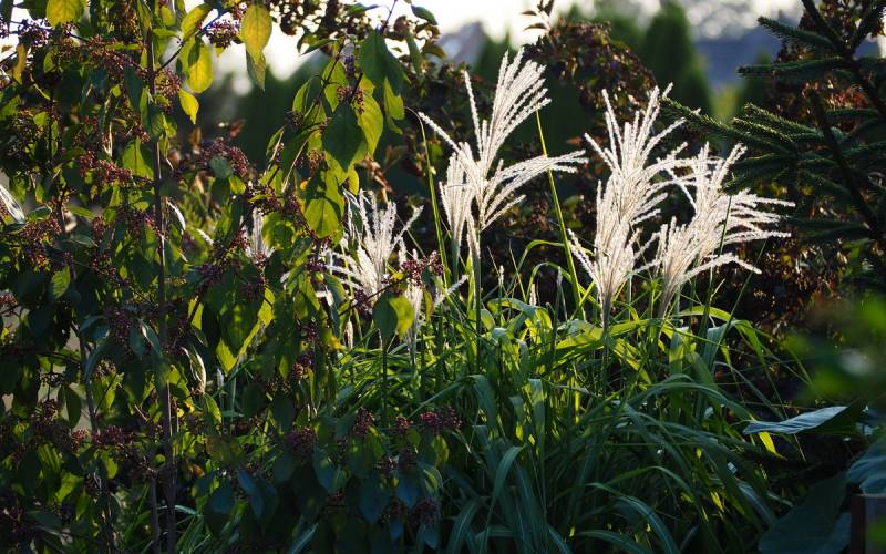 Miskanty: Morning Lights, Ferner Osten, Malepartus, Dronning Ingrid, Gnome, Kleine Fontane, Ballerina, Okapi, Mysterious Maiden, Rosi, Apache, Miskant olbrzymi Jubilar