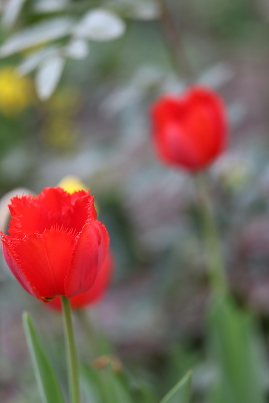 Odmiana Crystal Beauty jest porównywana do klasycznego czerwonego tulipana Apeldoorn, ale jej strzępiaste brzegi dodają elegancji i nowoczesnego wyglądu.