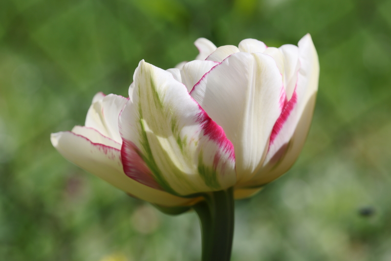 Wysokość: 40-50 cm Kwiat: bialy z purpurowymi końcami płatków i i zielonymi smugami Kwitnienie: kwiecień/maj Wymagania: przeciętna ziemia ogrodowa z tendencją do lekko zasadowej, przepuszczalna Zapach: Mrozoodporność: bardzo dobra na terenie całego kraju (4 strefa USDA)