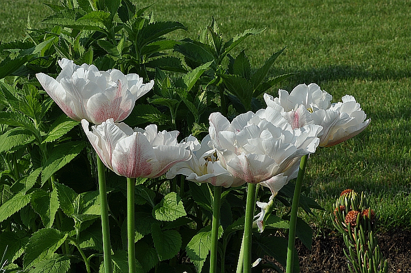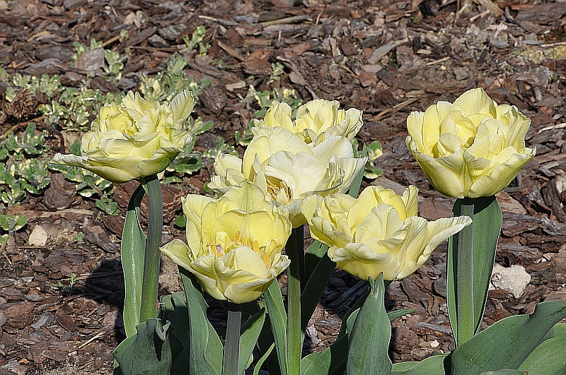 2 tulipany pełne wczesne - mają 25–30 cm, kwiaty mają czasem tak dużą liczbę płatków że przypominają kwiaty pełnych peonii. Kwitną w kwietniu.