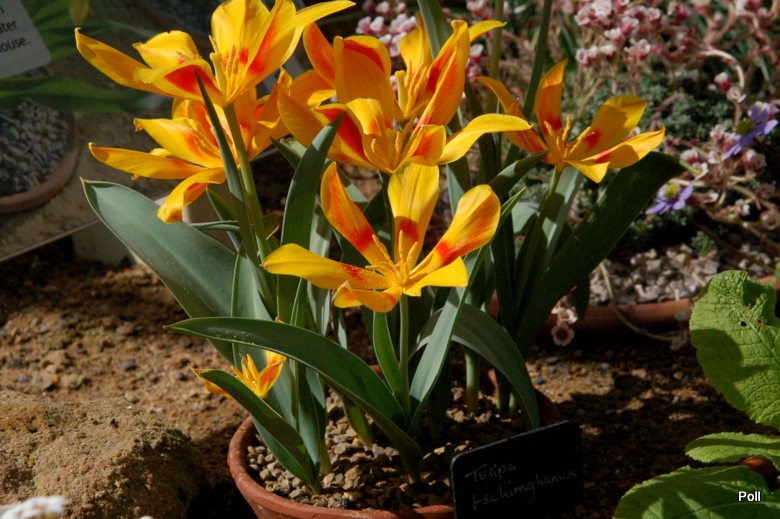 Tulipa kaufmanniana) - mają 15–30 cm wysokości, duże kwiaty, w czystych kolorach, z dużą, trójkątną plamą na zewnętrznych płatkach oraz liście z brązowymi smugami. Kwitną bardzo wcześnie w końcówce marca i na początku kwietnia