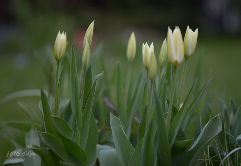7 tulipany liliokształtne - dorastają do 40-50 cm, ich kwiaty są jednobarwne lub dwubarwne (obwódki, smużki), o kielichowatym kształcie, płatki są ostro zakończone (szpic). Kwitną w maju, czasem bywają wrażliwe na wiosenne zawirowania pogodowe.