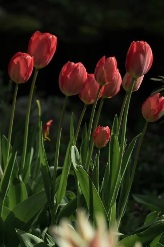 Tulipany lubią gleby lekkie, szybko nagrzewające się, dość bogate w składniki odżywcze. Cebule wkopujemy na jesieni, jak gleba ciężka to warto zabezpieczyć je jakimś preparatem grzybobójczym. Glebę nawozimy po posadzeniu cebul jesienią (tak przynajmniej pisze w książkach z mądrościami o tulipanach). Po wykwitnięciu tulipanów zostawiamy cebule w glebie dopóki nie zaschną liście. Potem lepiej wykopać, bo takie na przykład mokre lato może cebulom nie posłużyć - w naturze latem cebulki tulipanów mają wokół siebie suchą jak pieprz glebę. Nie wszyscy uskuteczniają coroczne wykopki, przyjęło się że cebulki tulipanów najlepiej wykopywać co trzy lata.