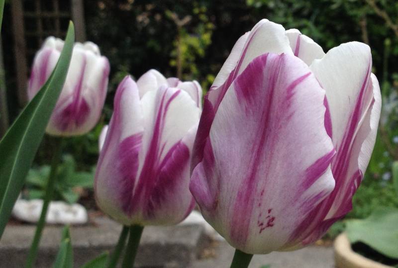 U mnie niewiele się zmieniło, tulipany Flaming Flag są takie delikatnie wybarwione i było je widać. Jest tez odmiana Striped Flag, mocniej wybarwiona.