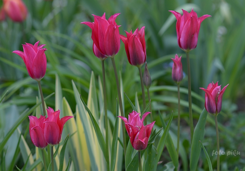 No to ja też coś dorzucę. W zeszłym sezonie ta odmiana rosła u mnie w kąciku Tulipanów Liliokształtnych, ale nie spodziewałem się, że jest niższa od innych odmian, więc była nieco ukryta. Z jednej strony zasłaniały ją wyższe 'Burgundy', a z drugiej ogniste 'Fly Away'.