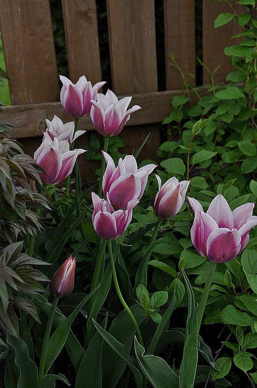 Wysokość: 50-60 cm Kolor kwiatów: płatki ciemno wrzosowe z białymi marginesami Termin kwitnienia: kwitnie w kwietniu i na początku maja Zapach: delikatny Wymagania: gleba przepuszczalna, o lekko zasadowym odczynie Mrozoodporność: dobra, można sadzić na terenie całego kraju