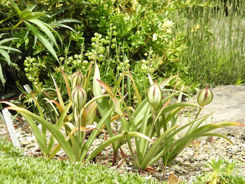 Tulipa tarda dekoracyjny jest również po przekwitnięciu. Uroczo wyglądają stosunkowo duże torebki nasienne na krótkich łodyżkach.