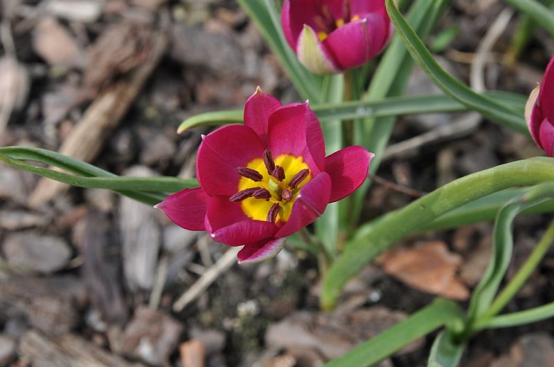 Rosną tam na rabacie śródziemnomorskiej, która o tej porze roku dopiero budzi się do zycia, więc w miejscu mocno nasłonecznionym, o przepuszczalnej glebie i niepodlewanym . Inna rzecz, że klimat angielski nie pozwala roślinom przesychać. think: Na tabliczce podpisany, jako Tulipa humilis, na stronie RHS dodany jest synonim Tulipa pulchella 'Persian Pearl'.