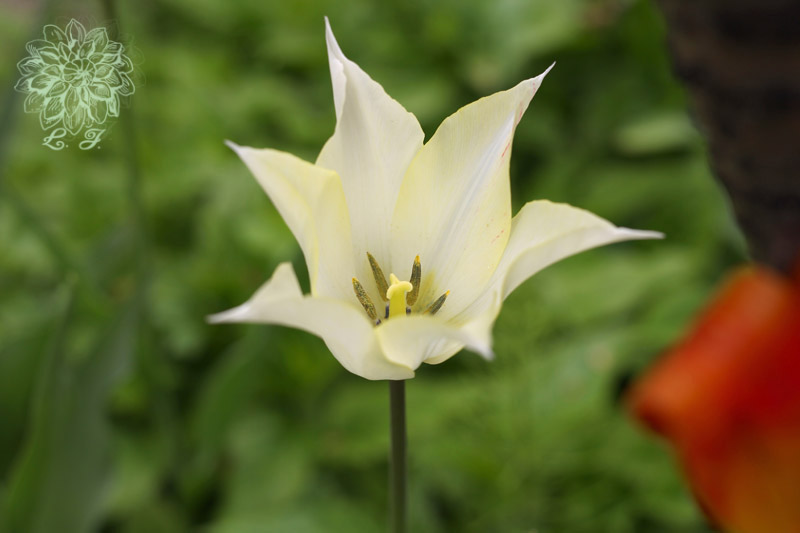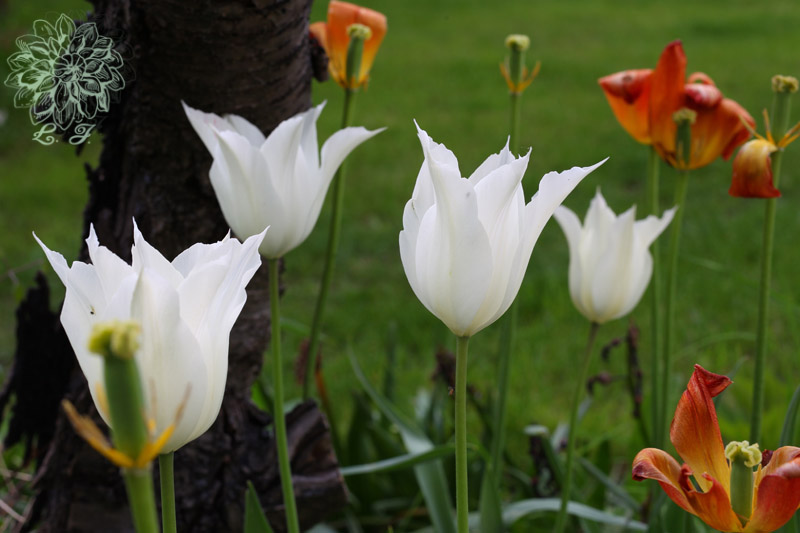 Drugi etap kwitnienia to zmiana barwy tulipana na śnieżno biały. Na początku myślałam, że to tulipan Saporro, bo on także miewa takie skłonności, ale znalazłam opakowanie...