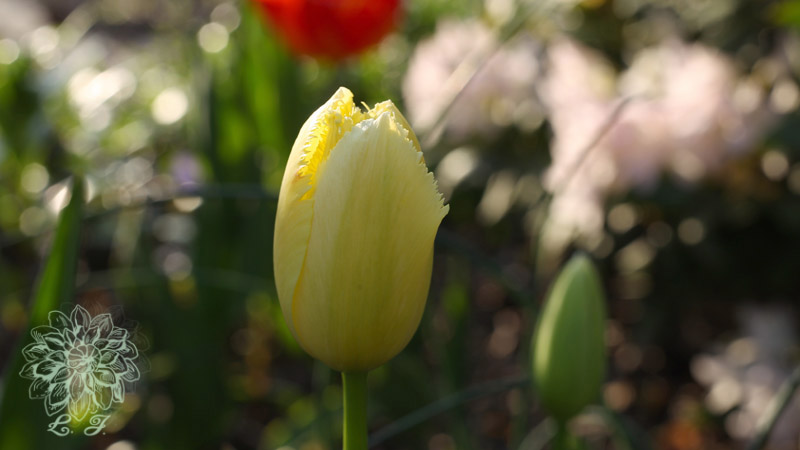 Wysokość: 40-50 cm Kwiat: na początku kwitnienia żółty, z czasem kremowy w czerwone smugi Kwitnienie: maj Wymagania: przeciętna ziemia ogrodowa z tendencją do lekko zasadowej, przepuszczalna Zapach: Mrozoodporność: bardzo dobra na terenie całego kraju (4 strefa USDA)