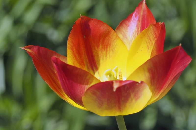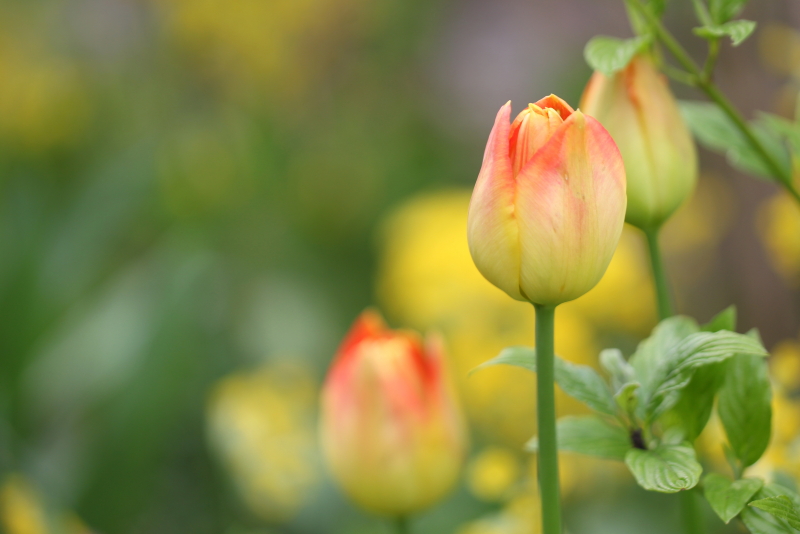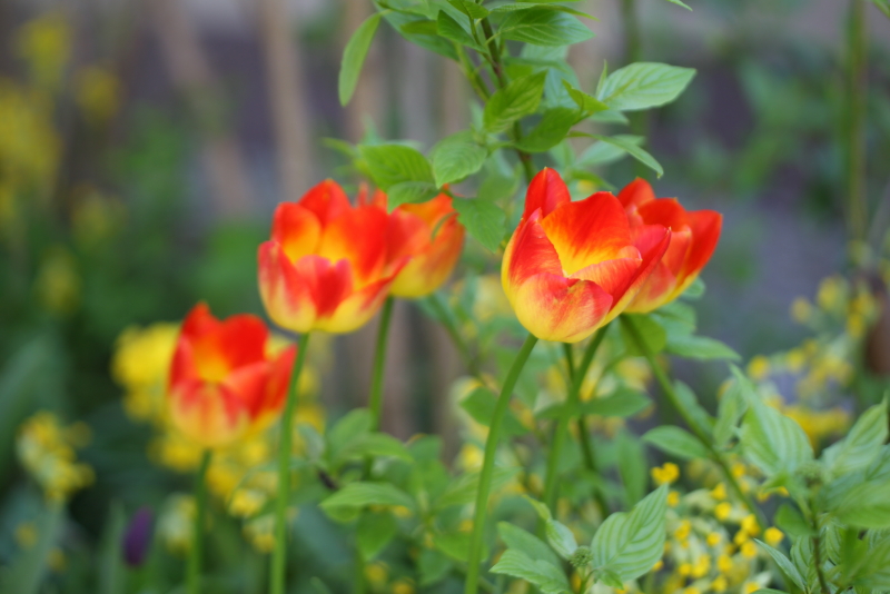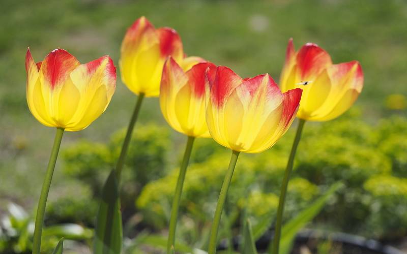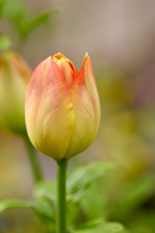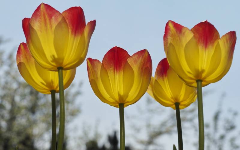 Wysokość: 45 cm Kwiat: cytrynowo-żółty zwieńczony "płonącymi" szkarłatno-czerwonymi krawędziami płatków; kolorystyka bardzo intensywna, energetyczna Kwitnienie: kwiecień-maj, doskonały na kwiat cięty Wymagania: przeciętna ziemia ogrodowa z tendencją do lekko zasadowej, przepuszczalna Zapach: brak Mrozoodporność: bardzo dobra na terenie całego kraju (4 strefa USDA)