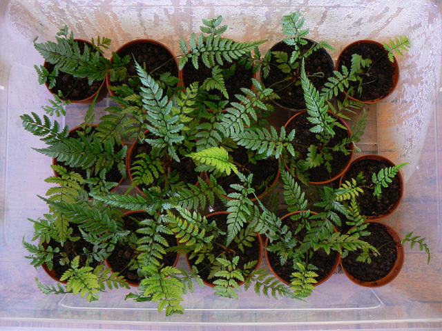 Krótkie przypomnienie, nasiona Athyrium filix-femina ‘'Dre's Dagger' dostałam od Siberki jesienią 2016 r, posiałam na początku lutego 2017, bardzo szybko zazieleniło się w pojemniku. Trzymałam to pod przykryciem kilka miesięcy, potem na chwilkę otwierałam, podlewałam przez podsiąkanie przegotowaną wodą. Na szczęście żaden grzyb nie zaatakował mojej 'hodowli'.