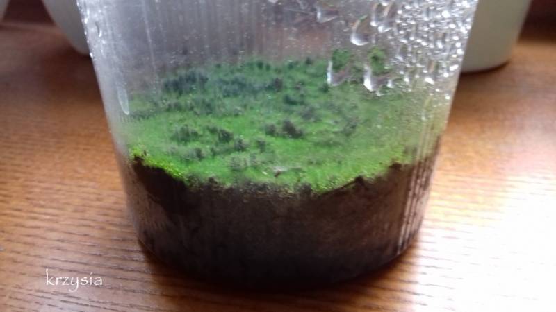 w międzyczasie dwa razy podlewałam od dołu przegotowaną wodą i chyba dwa razy otworzyłam pojemnik z ciekawości, żeby sprawdzić czy nie pachnie zgnilizną i jak wygląda na żywo, bez lekko mlecznej pokrywki.