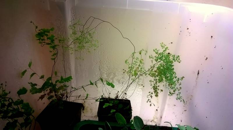 Chociaż czasem pojawiają się ciekawe niespodzianki.W tym pojemniku była wysiewana paprotka walijska 'Pulchritude'. Zarodników było bardzo niewiele i wyrosło tylko kilka paproci. Ciekawe czy chociaż jedna okaże się tą właściwą ?