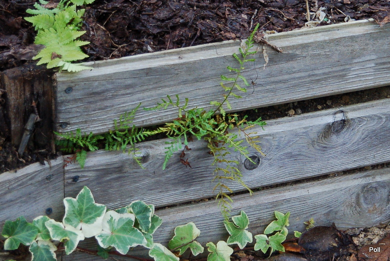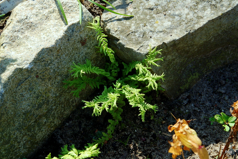 Okazało się, że okrywając na zimę paprocie stroiszem iglastym, przycisnęłam gałęziami liść z rozmnóżką a ona skorzystała z okazji i się ukorzeniła.