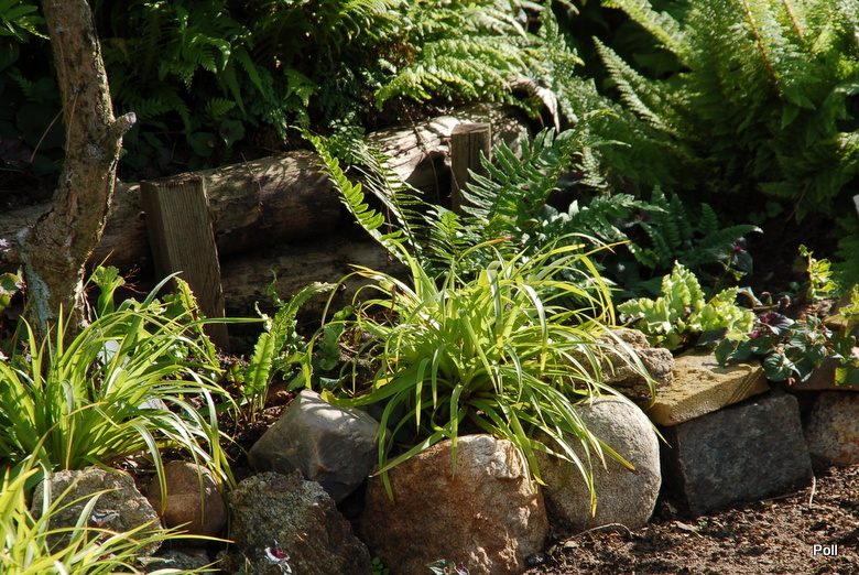 Bliżej ścieżki możesz zastosować różne formy języczników, ale radziłabym nie w głębokim cieniu i nie po jednym egzemplarzu. ...szczególnie dobrą formę 'Crispa'.