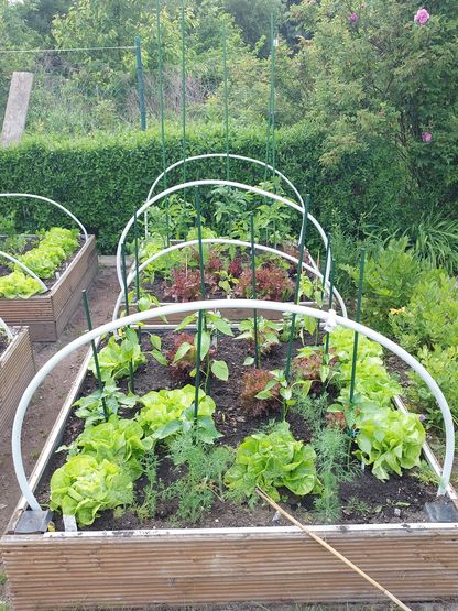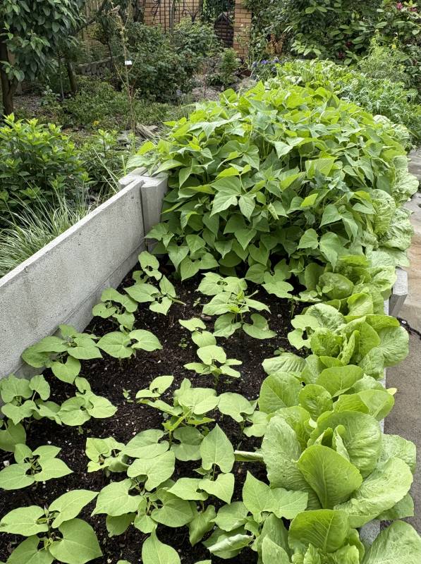 Ewuniu sałata w tym roku na wypasie,wyjątkowo obrodziła- dzielę się zsąsiadami bo nie jesteśmy w stanie przejeść.Ogorki siałam kilka razy i szczerze nie wiem kiedy będziemy zrywać.Fasolka wcześnie siana i chroniona przed zimnem zaczyna kwitnąć a kolejna całkiem ładnie ruszyła