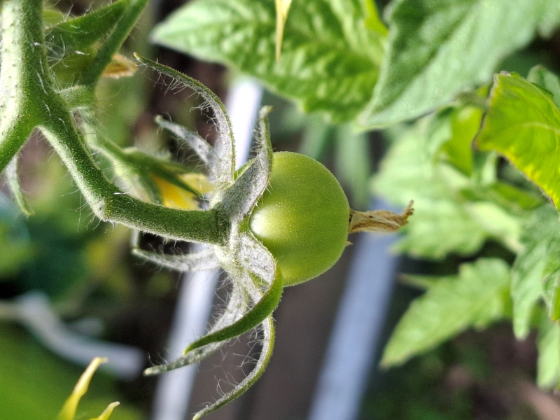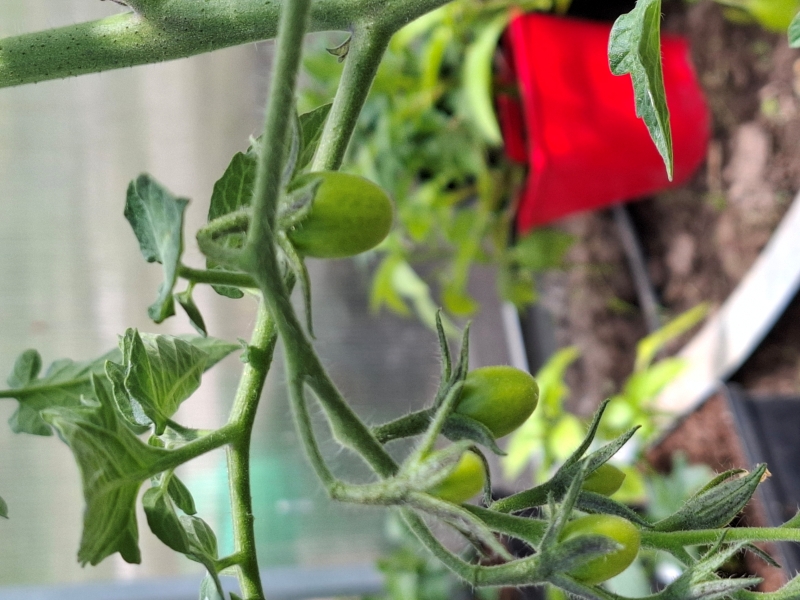 A tak aktualnie wyglądają moje sadzone niecały tydzień temu pomidorki. Kilka z nich ma już małe owocki: