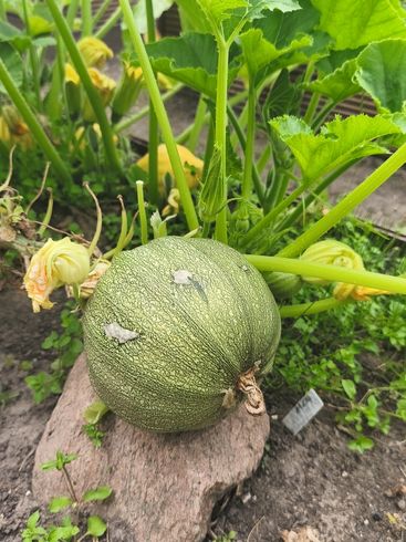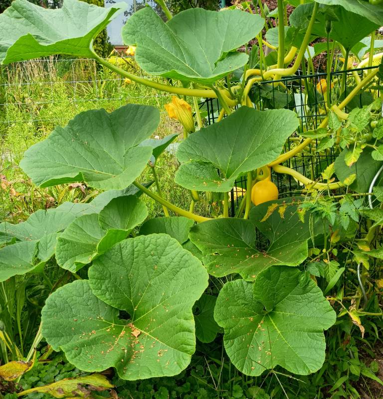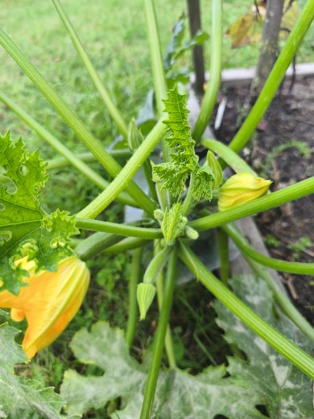 Za to cukinie i dynie ciągle się nie poddają. Mimo poobcinanych liści z mączniakiem. Nawet arbuz zawiązał owoc. Ciekawe czy zdążą...