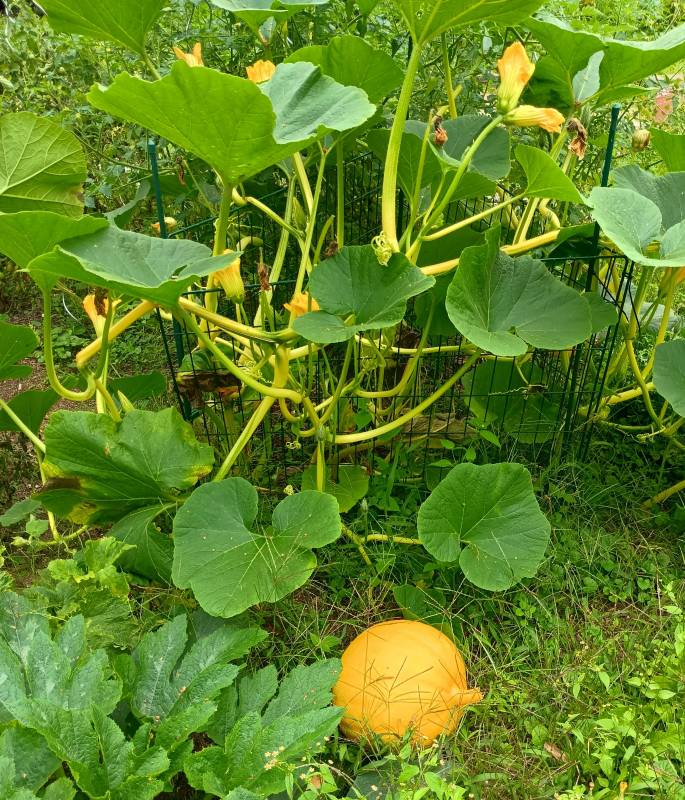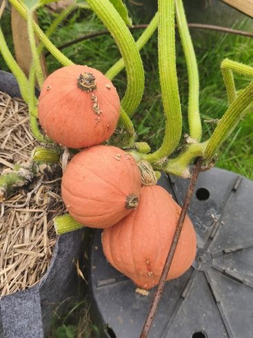 Dynie jakoś dają radę. Jedną już zerwałam. Reszta jeszcze sobie dojrzewa.