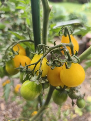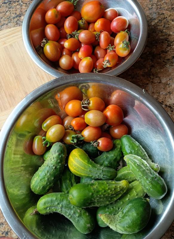 Edit: niby odtrabilam koniec ogórków, ale dzisiaj jeszcze kilka i zaczynam zbierać pomidorki champagne cherry, żółte maleństwa