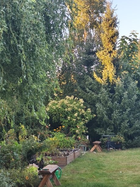 Ogórki już usunięte. Na ich miejscu i na miejscu fasolki szparagowej posiałam nawozy zielone: grykę, gorczyce, żyto i jakąś mieszankę z łubinem.