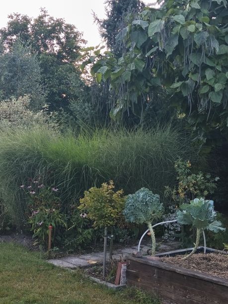 A to mój tegoroczny eksperyment - kapusty ozdobne. Ślimory je kochają, stąd takie wysokie "nóżki" 2smiech Podobają mi się ich przebarwiające sie jesienią liście... ale moje ciągle tylko zielone think: