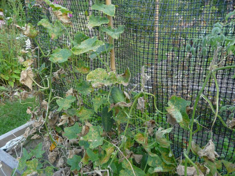 Moje cukinie maja liście marmurkowe, ale miałam na nich mączniaka na pewno. Liście systematycznie obcinałam, bo nie chciało mi się stosować chemii. W sumie wyszło im to na dobre, bo nowe liście były porażone sporadycznie (też zresztą zaraz wycinane) i dzięki temu cukinie i dynie zawiązały nowe owoce. I mają nowe kwiaty.