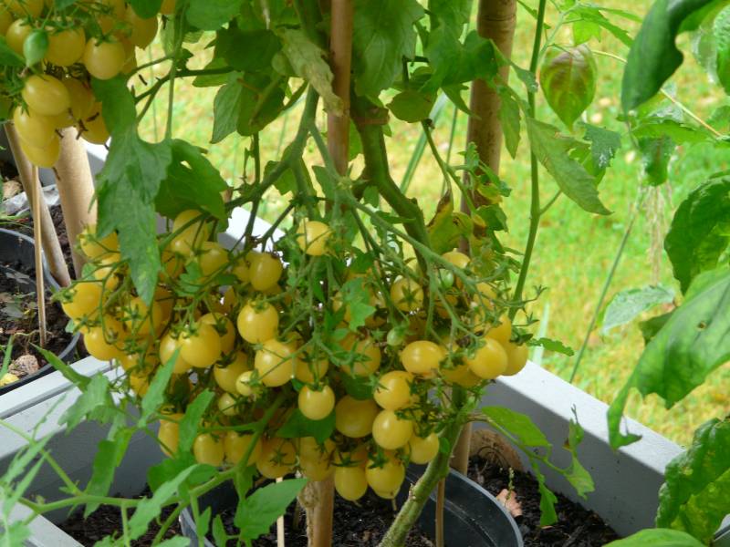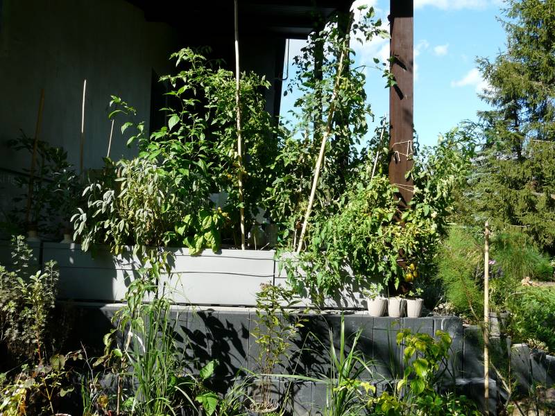 Co ciekawe, pomidorki poza tunelem, w donicach tarasowych mają się całkiem dobrze.
