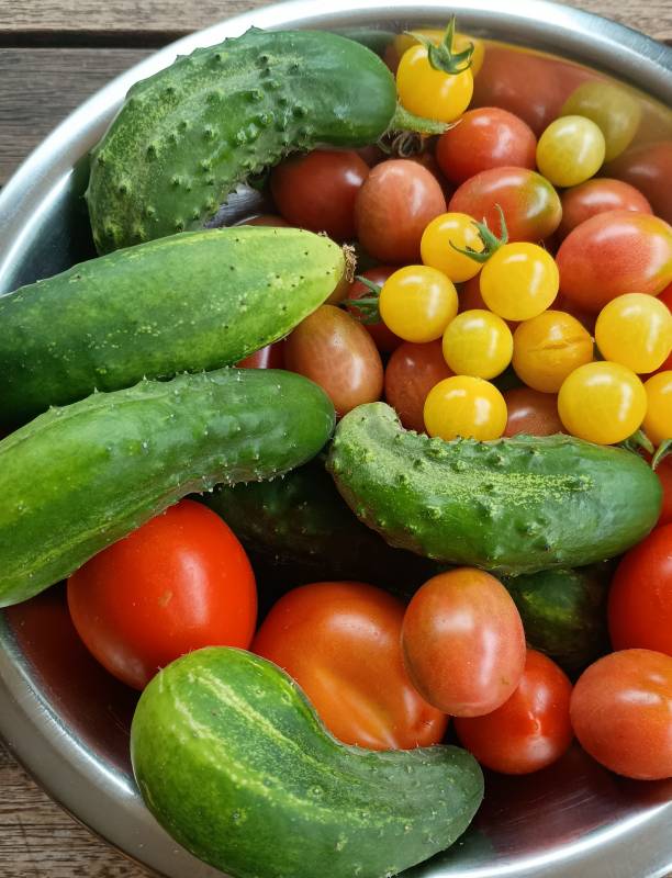 U nas ogórki właśnie się skończyły, te na fotce to dzisiejszy zbiór, ale dopisały w tym sezonie. , zrobiłam 24 słoiki a przez ostatni tydzień codziennie jedliśmy z dziećmi. Za to pomidory złapały grzyba i tylko jeszcze dobrze wyglądają te maleńkie żółte... Zobaczymy...