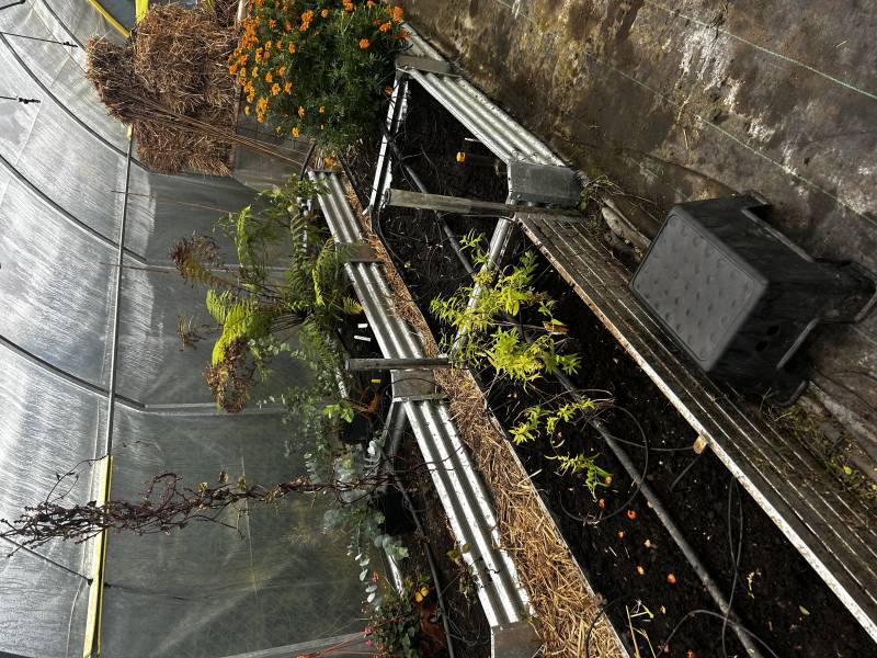 Było ponoć -6, a to dużo, nawet dalia wstawiona z donicą do tunelu, nie oparła się mrozowi.