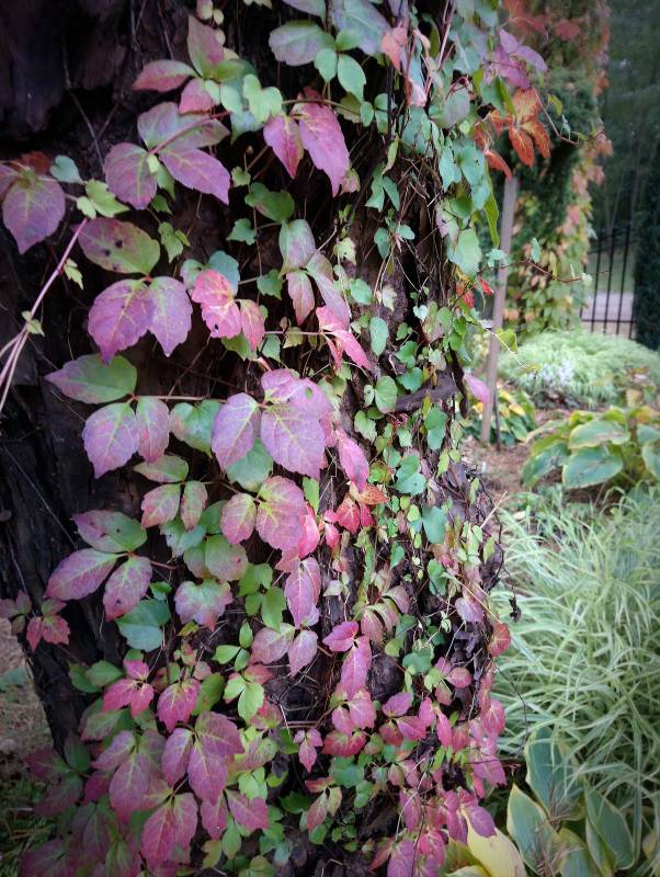 Bardzo ozdobna forma przypominająca bluszcza, ale z opadającymi na zimę liśćmi i pięknie przebarwiającymi się na czerwono.