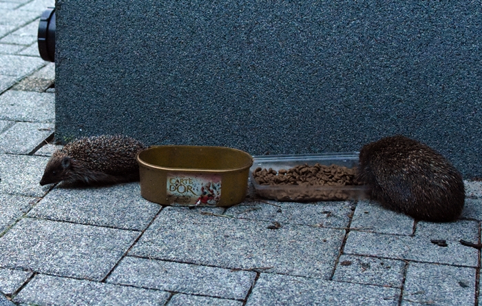 Przychodzą od kilku lat, od 3 do 6 (trudno dokładnie rozróżnić i policzyć :lol: ). Około 21 zaczyna się wędrówka, najpierw szur szur na korze pomiędzy gałązkami potem szybka przebieżka przez trawnik, jeszcze krótki przystanek i zerknięcie spod liści magnolii czy na pewno droga wolna i w końcu słychać chrup, chrup. Jak jednocześnie zbierze się więcej niż 3 to także na fuczenie można się załapać. Wystarczy wieczorkiem usiąść na schodach, z kubkiem herbaty w ręce i czekać :zdrowko